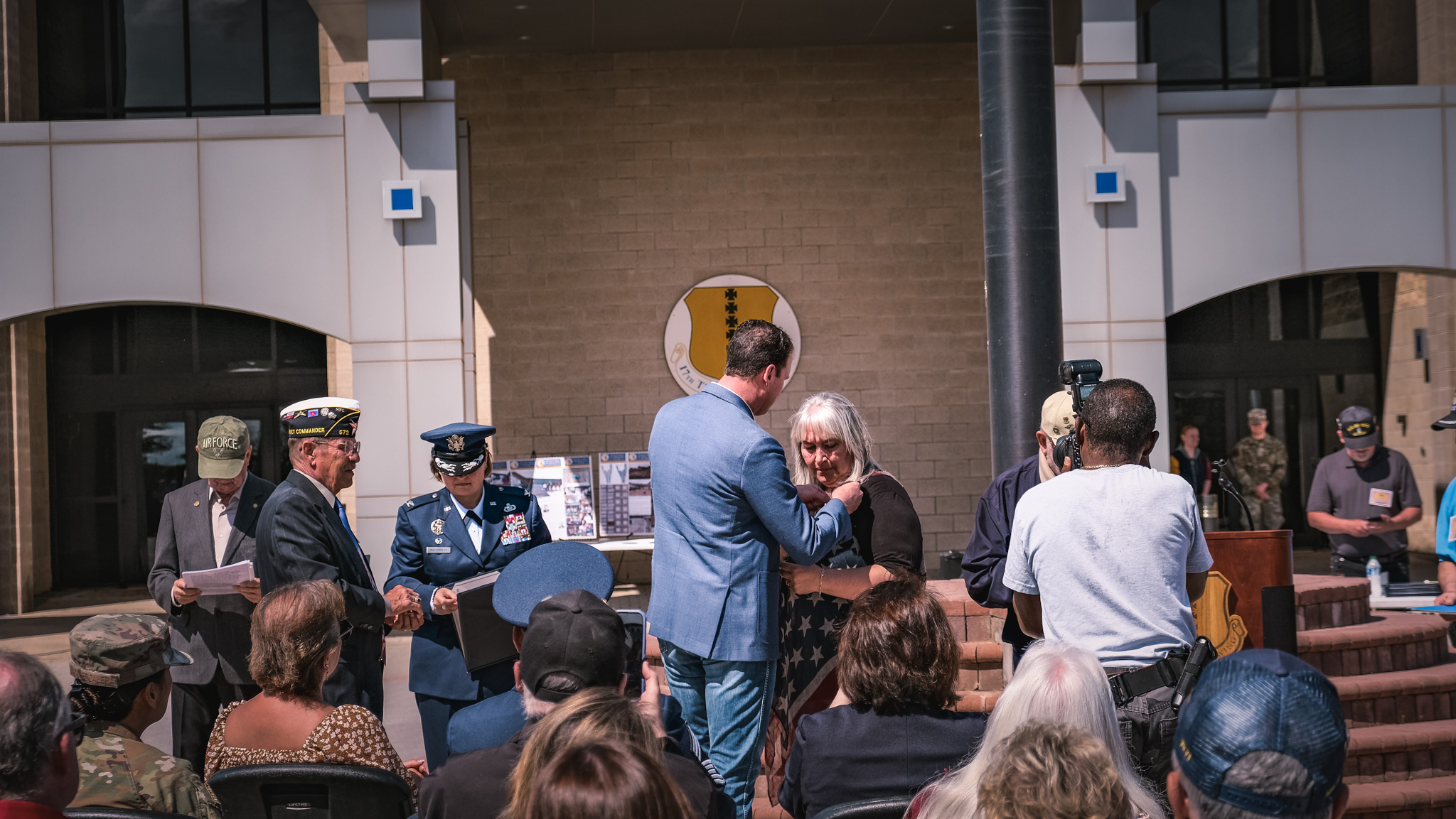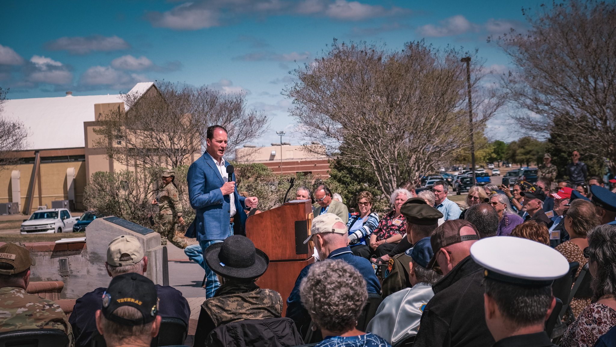 U.S. Rep. August Pfluger (R-Texas), a retired Air Force officer, addressed the crowd and acknowledged the emotional weight of the day.