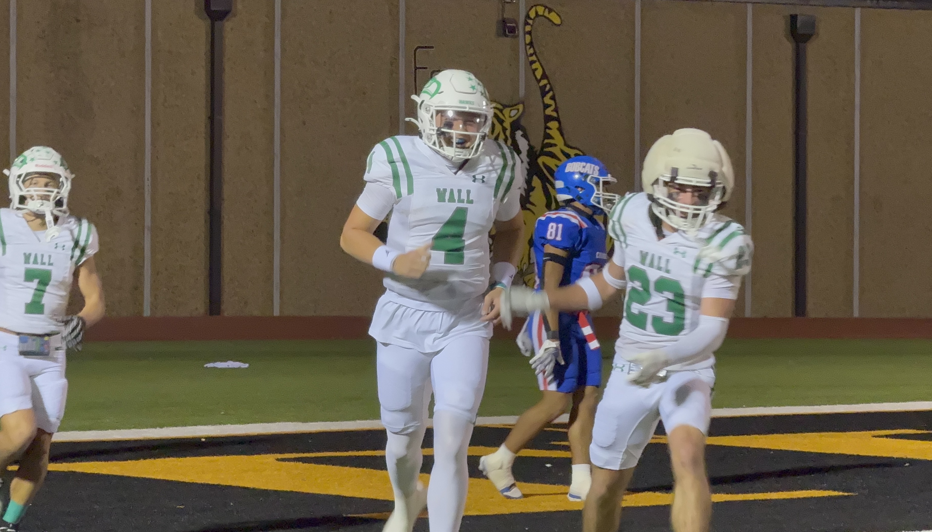 Minutes later, Hagyn Barbee came unblocked on a blitz and forced a fumble on the ensuing sack. Wall collected its second takeaway and handed the ball back to the offense. The Hawks' O thanked the defense with a 10-yard run from Brady Neal to put Wall up 13-0 with 9 minutes left in the 1st quarter.